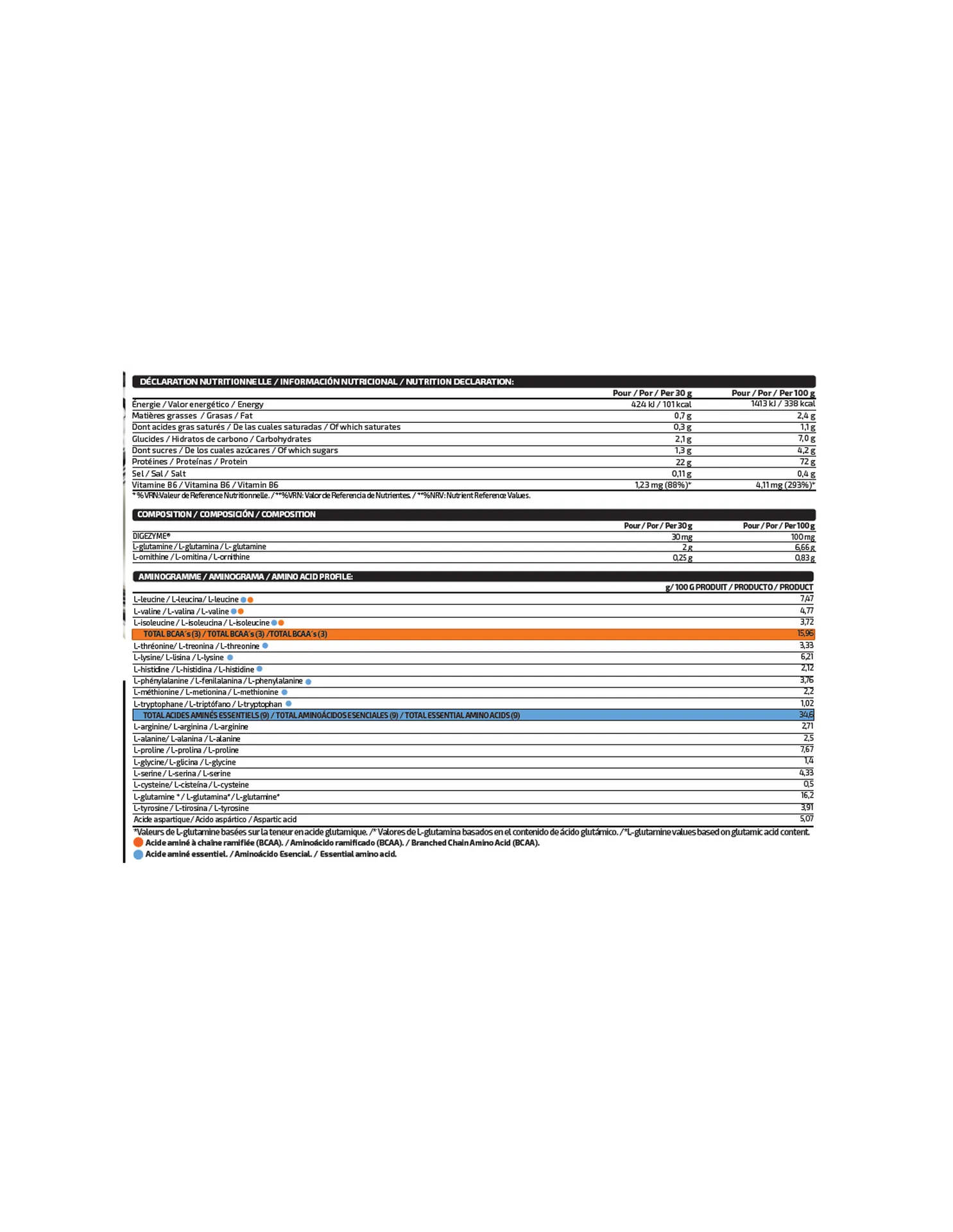 - 85 % de concentré de protéines de lait (MPC ) sur matière sèche.