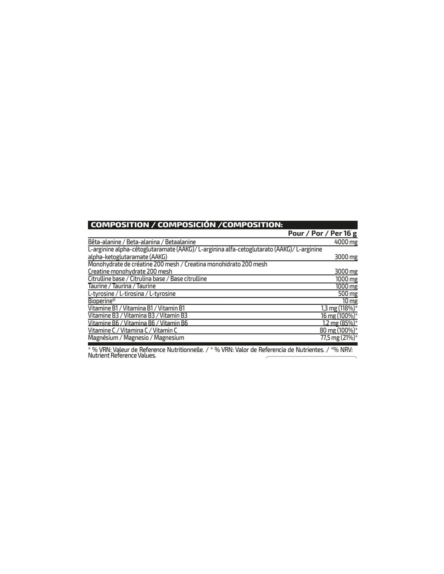 Une formule pré-entraînement sans stimulants, méticuleusement développée par l'équipe R&D d'iO.GENIX, pour des performances optimales pendant vos séances. Grâce à l'action synergique de ses ingrédients et à leur excellente absorption et biodisponibilité, elle procure des sensations exceptionnelles. La formule brevetée Bioperine® contient de