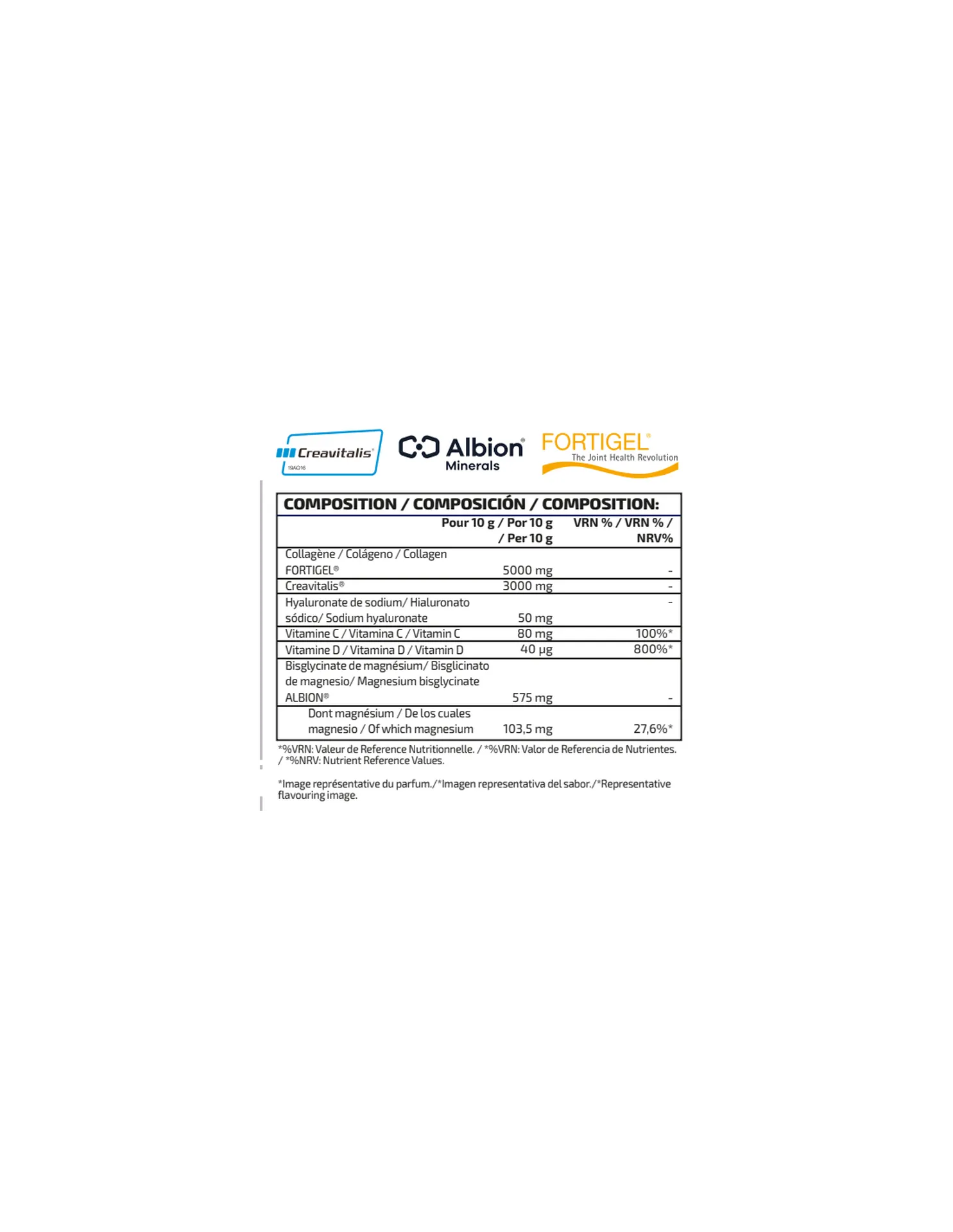 Grâce à la présence du collagène Fortigel®, reconnu pour son excellente biodisponibilité, cette formule contribue au maintien normal des os, des articulations et de la peau. La créatine monohydratée Creavitalis® soutient quant à elle les performances physiques lors d’exercices courts et intenses.